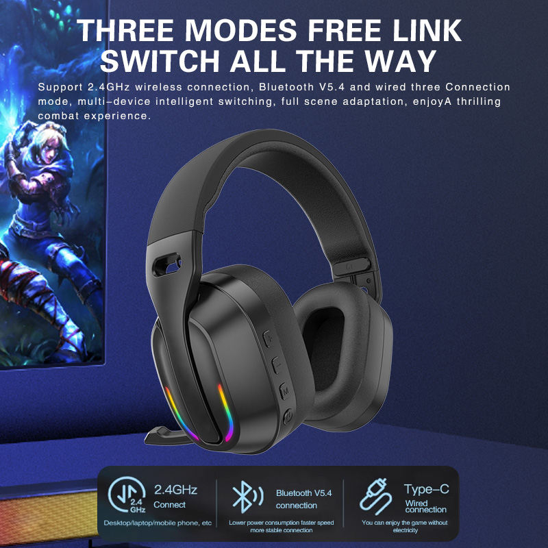 JITE M-8 headset gaming 4-in-1 Headset Bluetooth 5.4 mode 2.4G koneksi Headset Gaming Wireless
