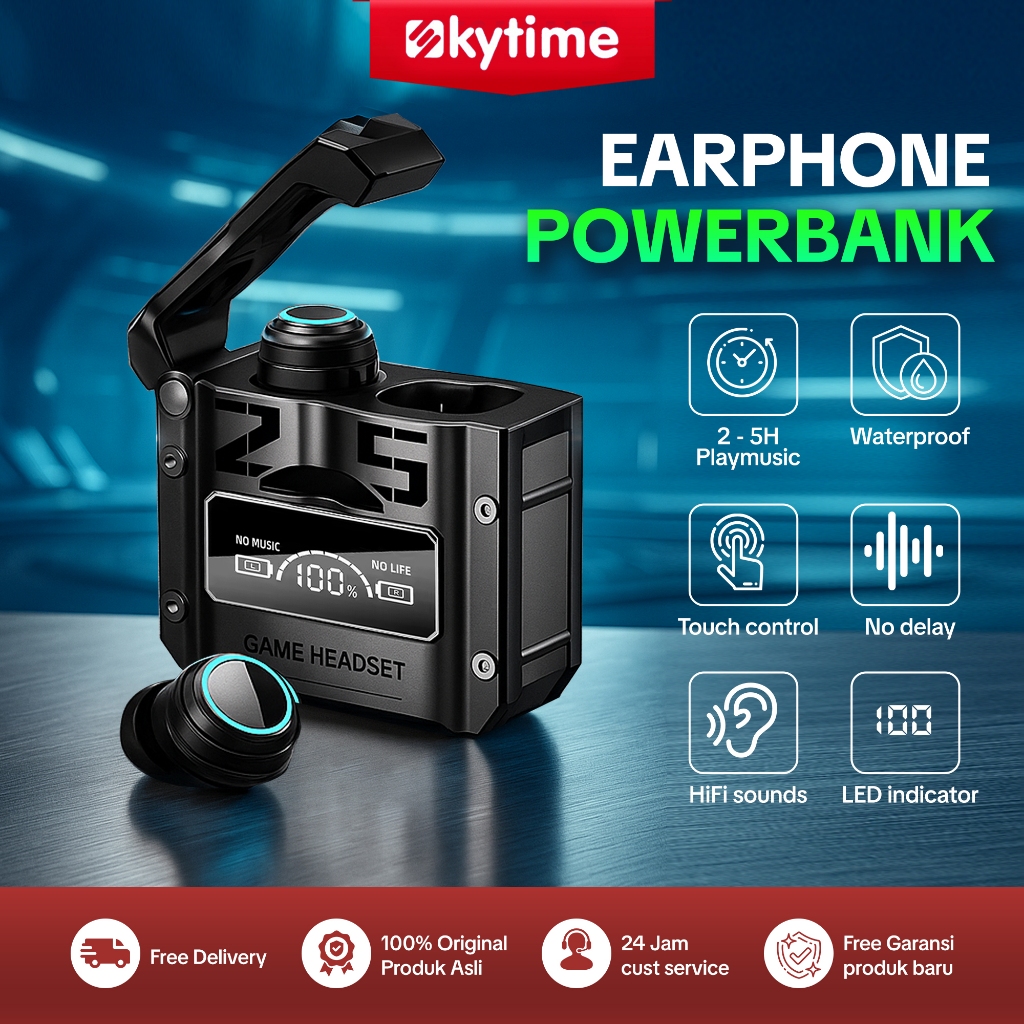 Skytime EP32 2in1 Gaming Earphone Powerbank Low Latancy TWS Bluetooth 5.4 Noice Canceling Headset Super Bass Model Mechanical