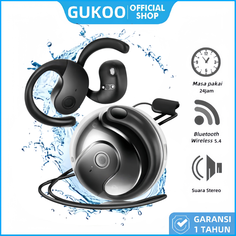 GUKOO Headset OWS SHAP Earphone Bluetooth Super Lembut + IPX5 Waterproof – Suara Cinema & Baterai 30 Jam