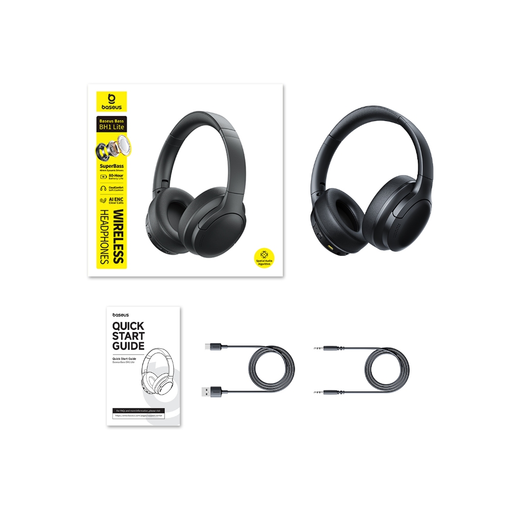 Baseus Bass BH1 Lite Wireless Headphone Bluetooth 6.0 ENC 40mm Super Bass Hit Earphones 80H Playtime