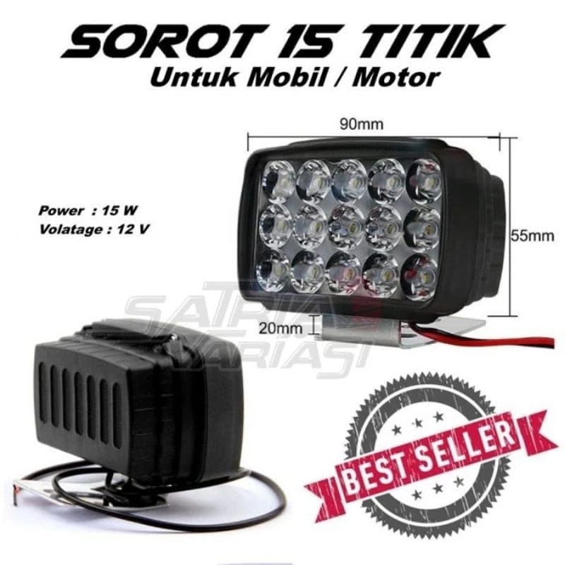 cuci gudang paketan 2 lampu tembak sorot CWL led cree 15 mata motor mobil super terang plus saklar ON OFF