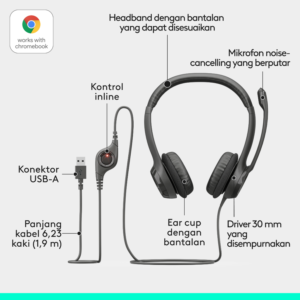 Logitech H390 Headset Stereo USB dengan Mikrofon Noise-Cancelling