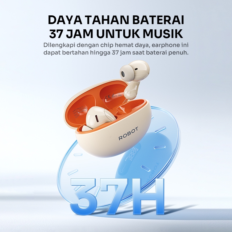 ROBOT Earphone Wireless Bluetooth 6.0 Suara Jernih Powerful Bass Pemakaian 37 Jam dengan Tampilan Daya LED TWS Nova T3 - Garansi 1 Tahun