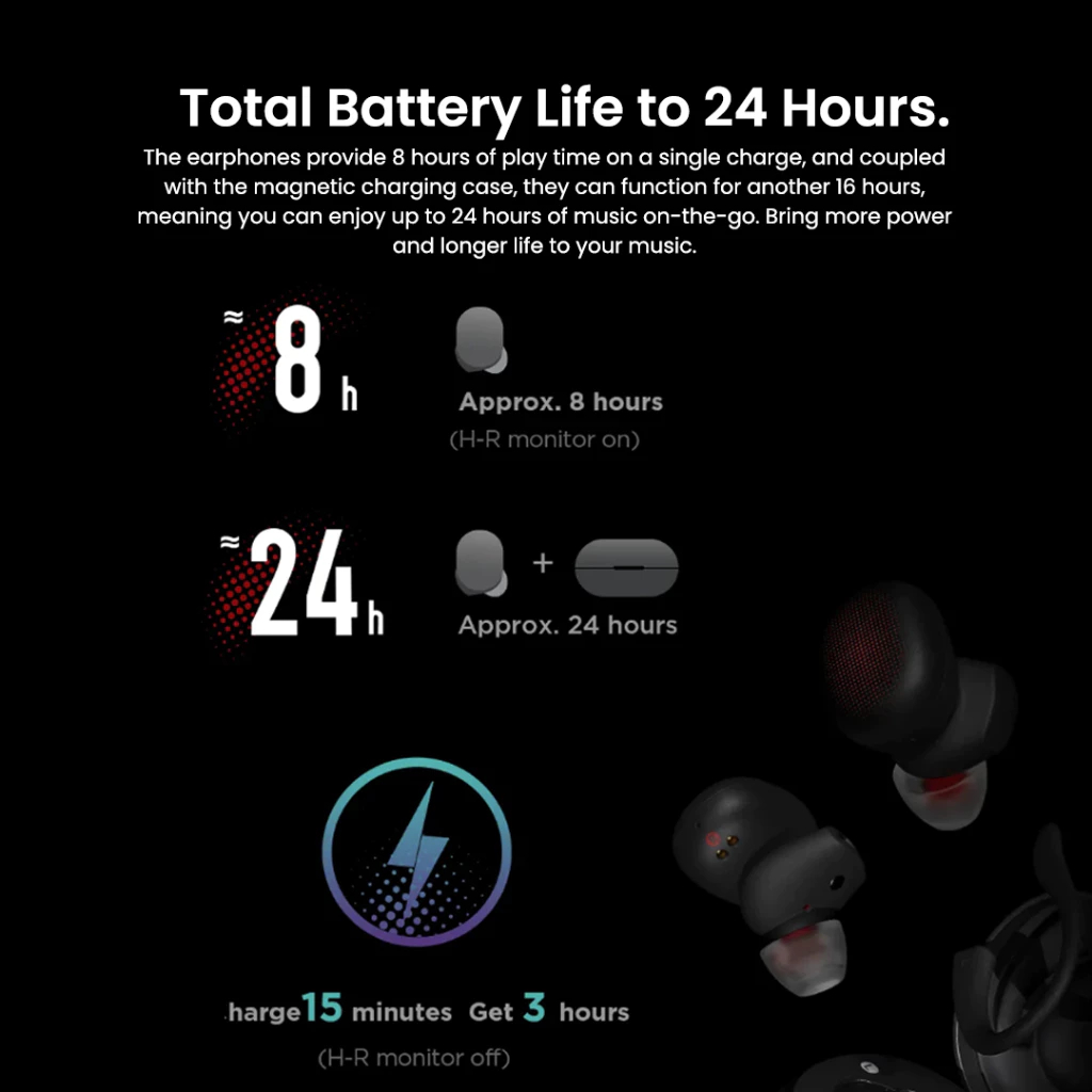 Amazfit Powerbuds | TWS Sporty dengan Heart Rate Sensor | ENC Dual Mic | Baterai 24 Jam | IP55 Tahan Keringat & Debu