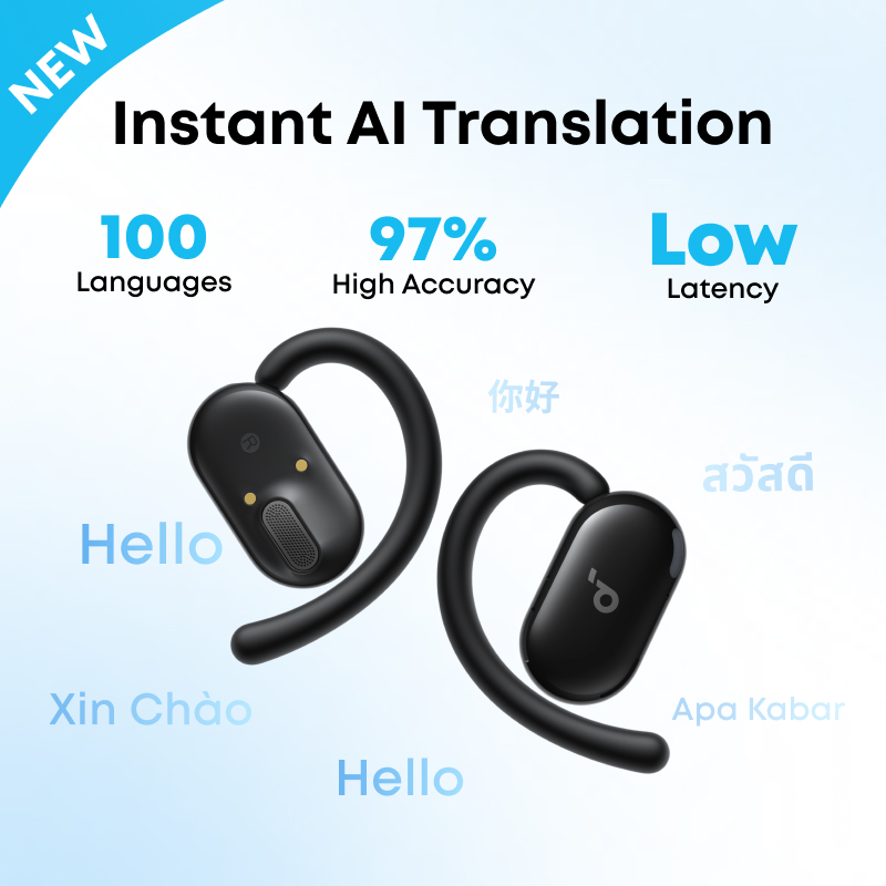Soundcore by Anker AeroFit V20i OWS Open-Ear Headphones Adjustable Ear Hooks Ultra-Comfort Snug Fit Powerful Sound Clear Calls IP55 LED