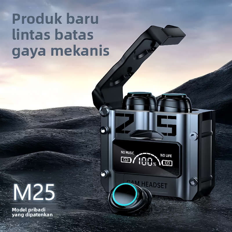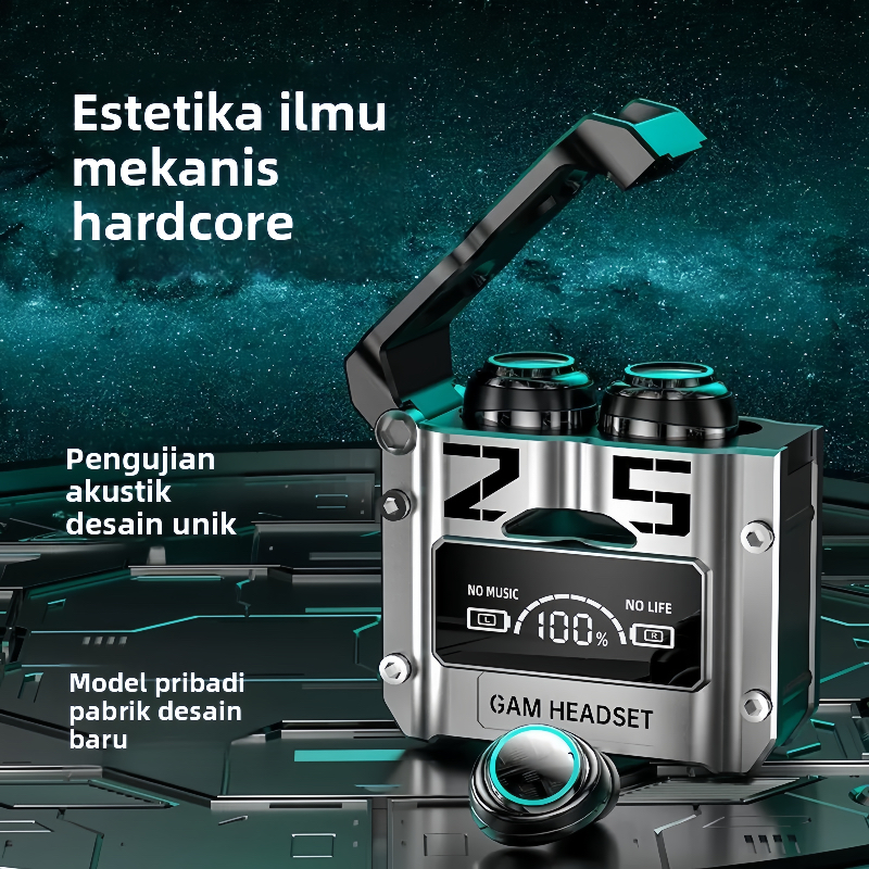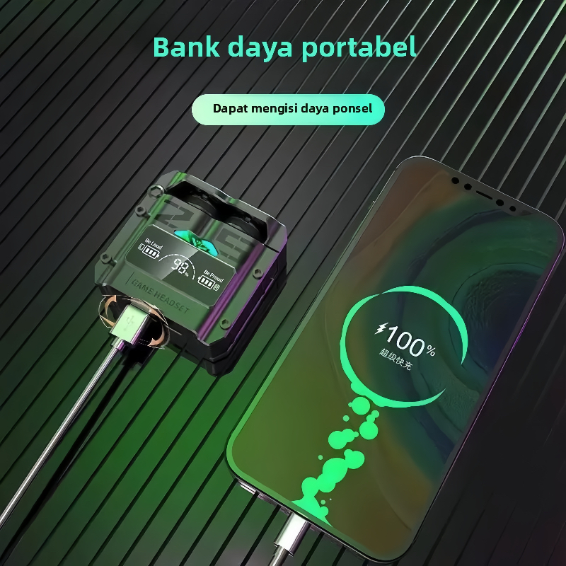 GUKOO Earphone Headset Bluetooth 48 Jam Tahan Baterai Desain Mechagami + Charger Case Jadi Power Bank
