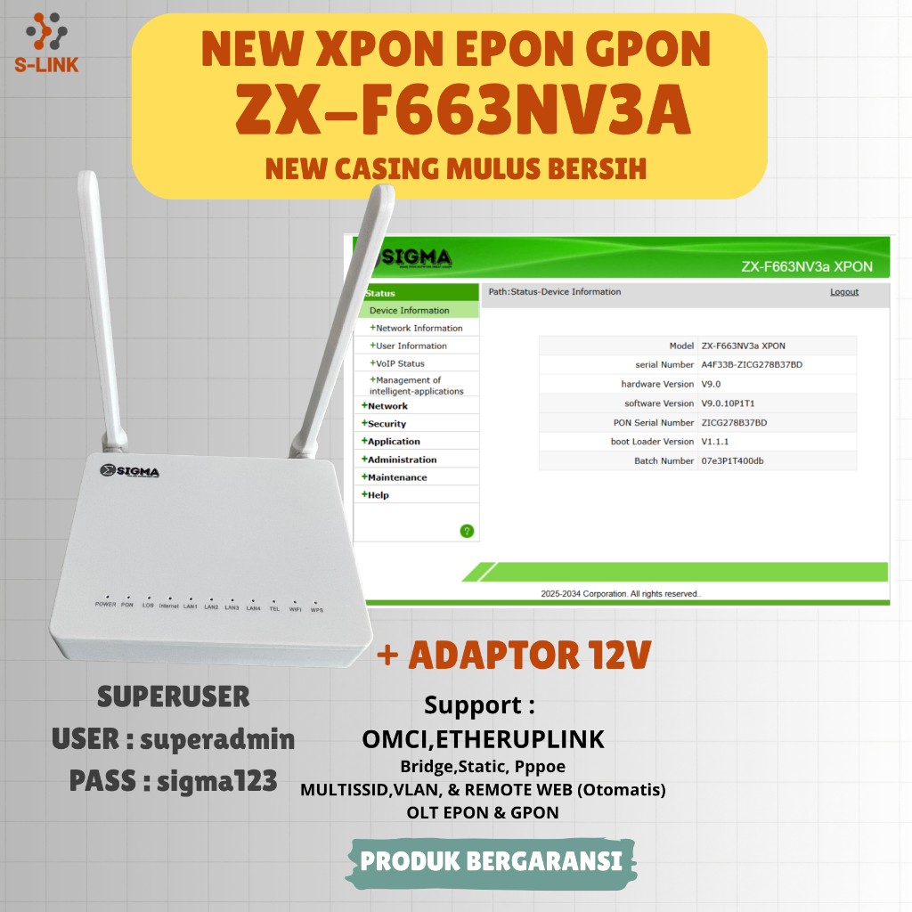 NEW ONT XPON EPON/GPON ZX-F663NV3A OMCI DENGAN ADAPTOR