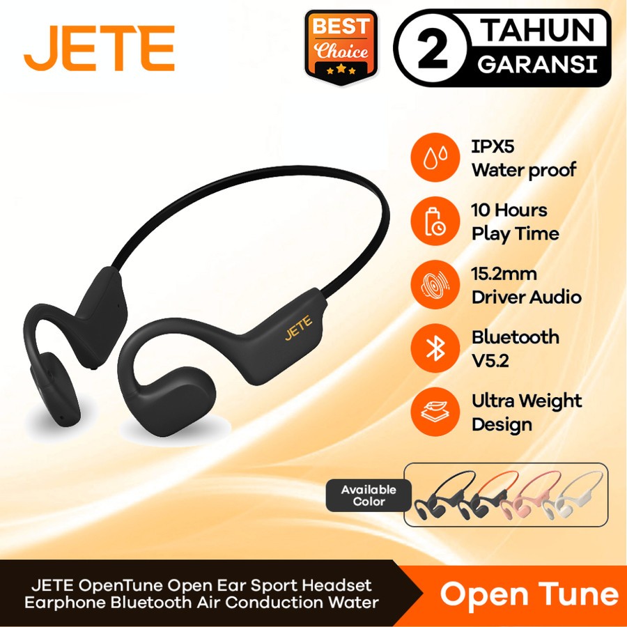 JETE OpenTune Open Ear Sport Headset Olahraga Lari Earphone Bluetooth Air Conduction Water Garansi 2 Tahun