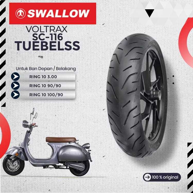BAN SWALLOW VOLTRAX 3.00-10 ukuran Ban 3.00 Ring 10 untuk Motor/sepeda Listrik type SC-116 / SC-115 Tublless |Asli Original Swallow