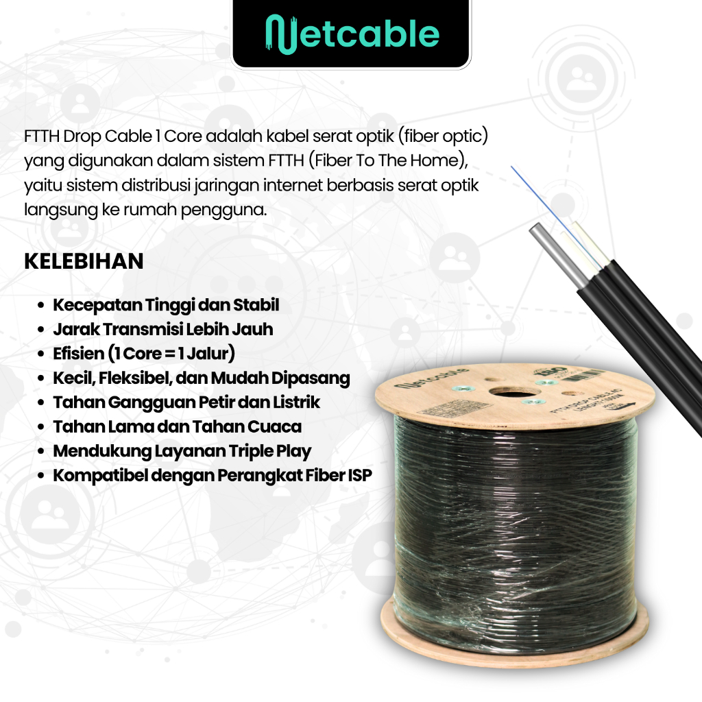 NETCABLE Dropcore 1 Core 3 Seling 0.9mm 1KM | Kabel Fiber Optik Stabil FTTH