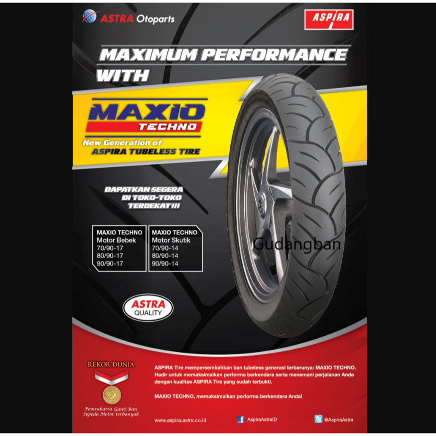 ( PAKET 2 BAN - RING 17 ) TECHNO 70 90 17 & 80 90 17 Aspira Maxio motor bebek TUBELESS