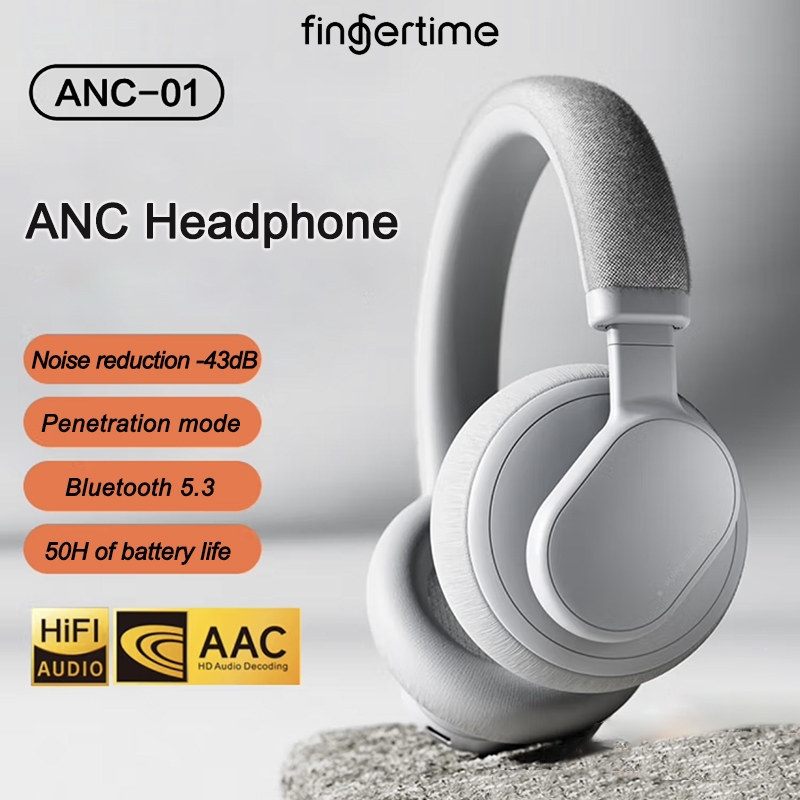 Fingertime ANC 01 Wireless Headphone Bluetooth 5.3 Pengurangan Kebisingan Aktif-Mikrofon ENC 43dB