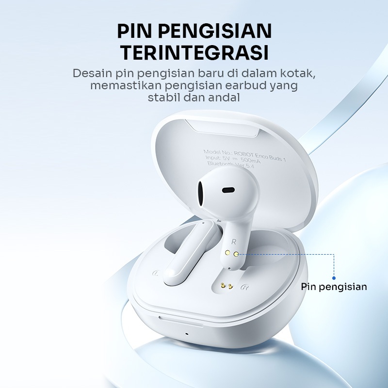ROBOT TWS Enco Buds 1 True Wireless Semi In-Ear Mini Earbuds Bluetooth 5.4 Sports Earphones Headphones in Mic - Garansi 1 Tahun