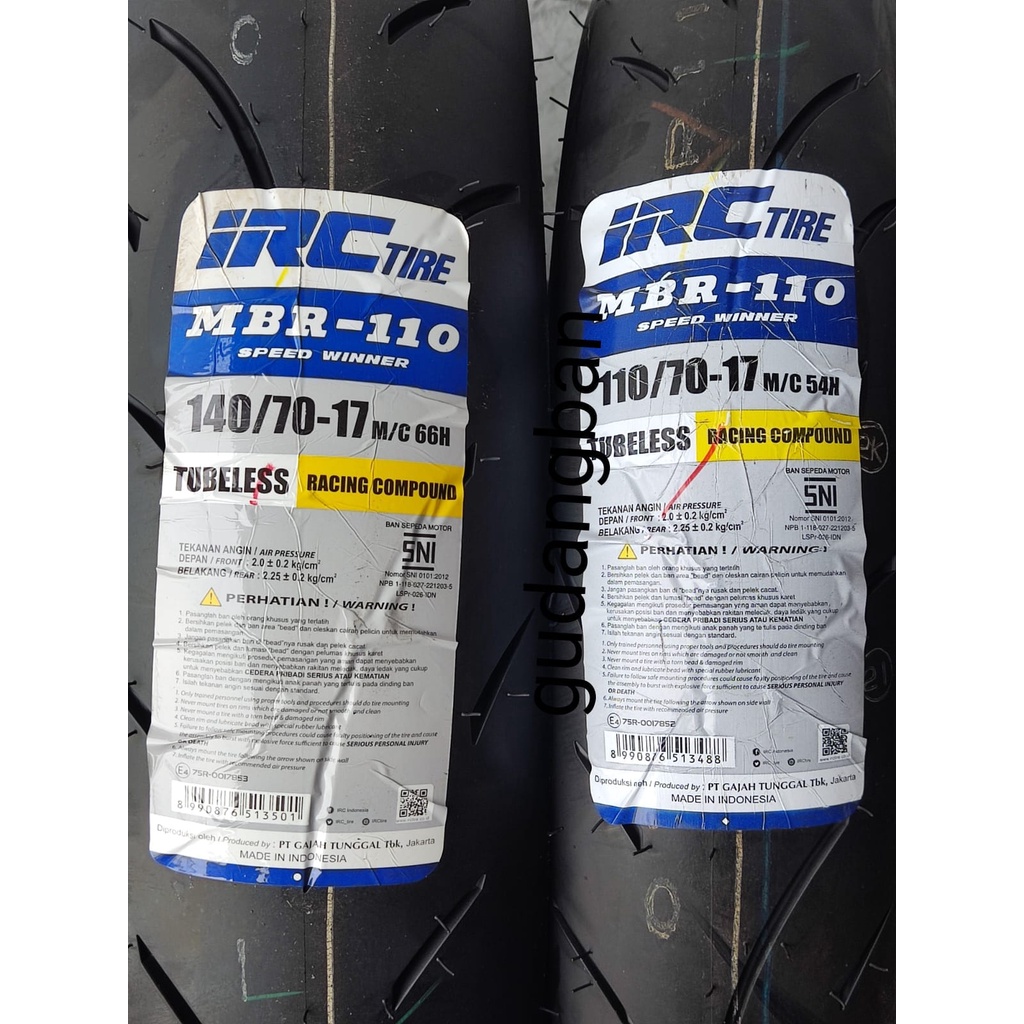 ( PAKET 2 BAN - RING 17 ) MBR110 110 70 17 & 140 70 17 IRC Motor Balap Soft TUBELESS