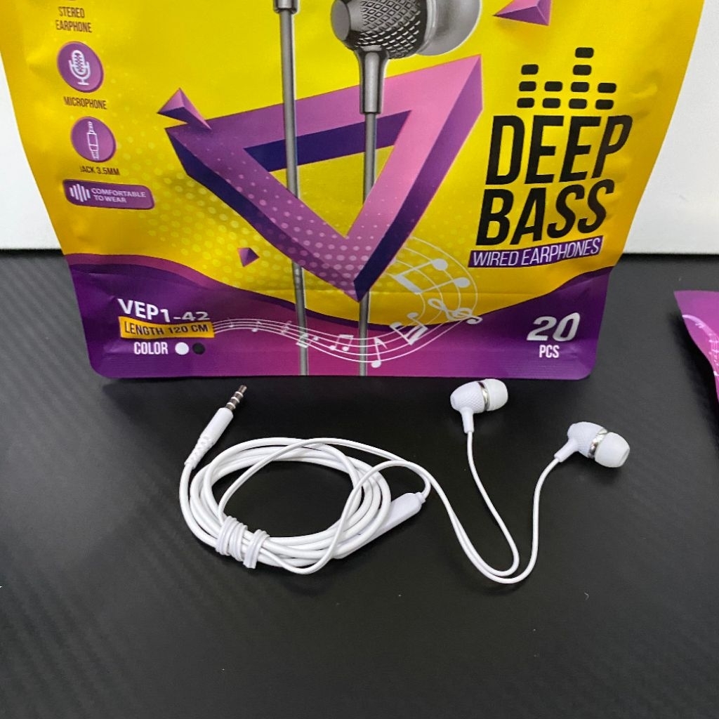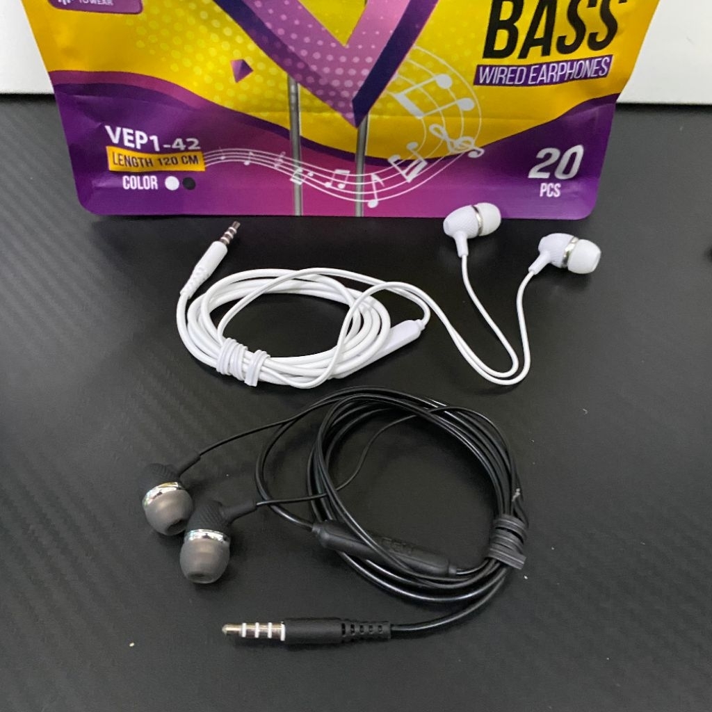 NEW ARRIVAL V-GEN VEP1-16//VEP1-42[ 1 PACK ISI 20 Pcs ] HEADSET/HF/EARPHONE WIRED DEEP BASS