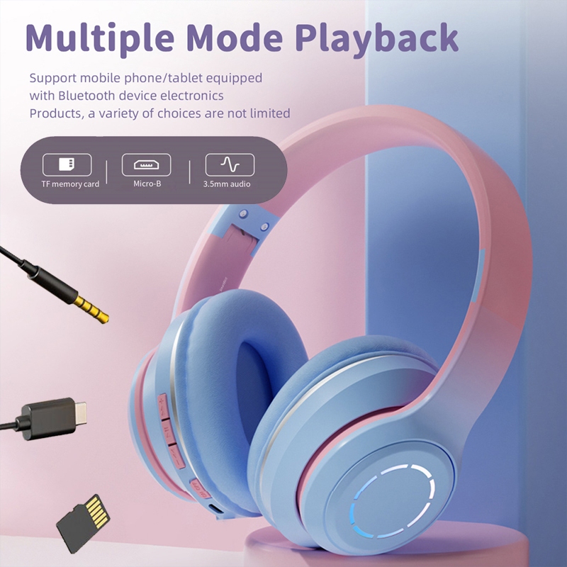 SmartBird Headphone CXT-07 Gradient Color Bluetooth Wireless Headset Stereo Hifi Sound Music Game RGB LED Light Earphone Can talk
