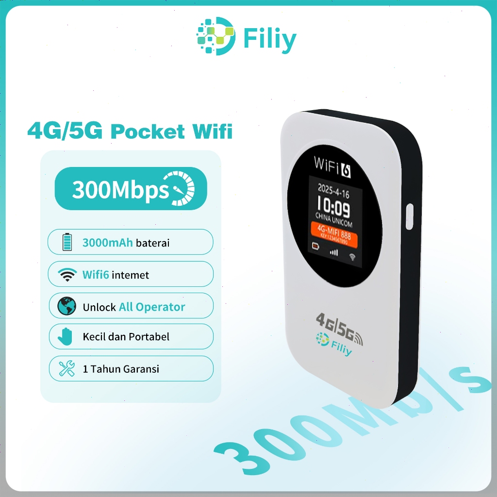 Filiy Modem Wifi 4G/5G Unlock All Operator Portable Pocket Wifi Router Nirkabel 300Mbps 3.000 mAh