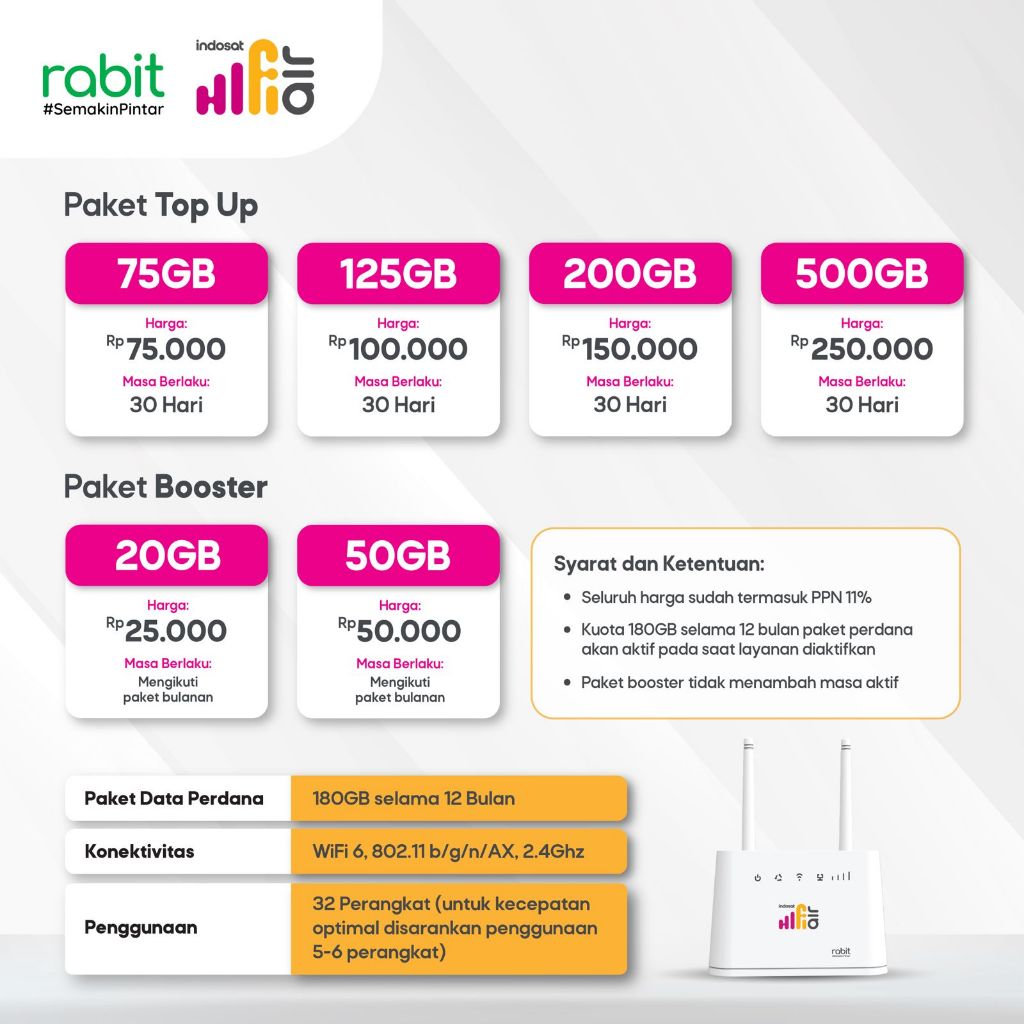 RABIT CPE Modem Wifi Router 4G LTE Indosat Hifi Air - Router Wifi 6 USB Type C Sim Card Free Kuota
