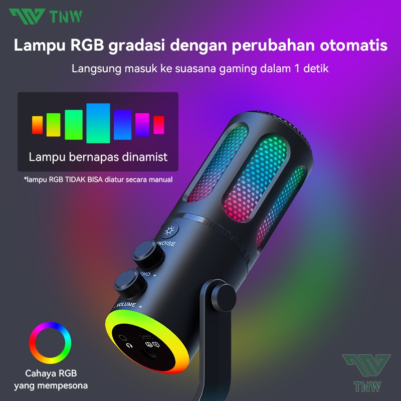 TNW K18 Microphone Condenser USB Type-C Mikrofon with RGB Dynamic Mic for PC Laptop Live Streaming Gaming Recording