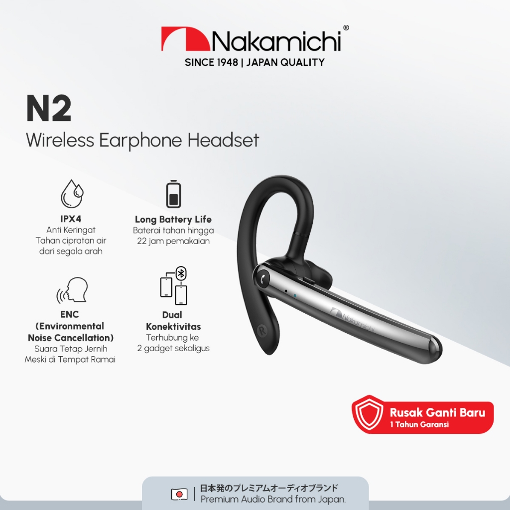 Nakamichi N2 Mono Headset Bluetooth Noise Cancelling Wireless Earphone Mic HD Black
