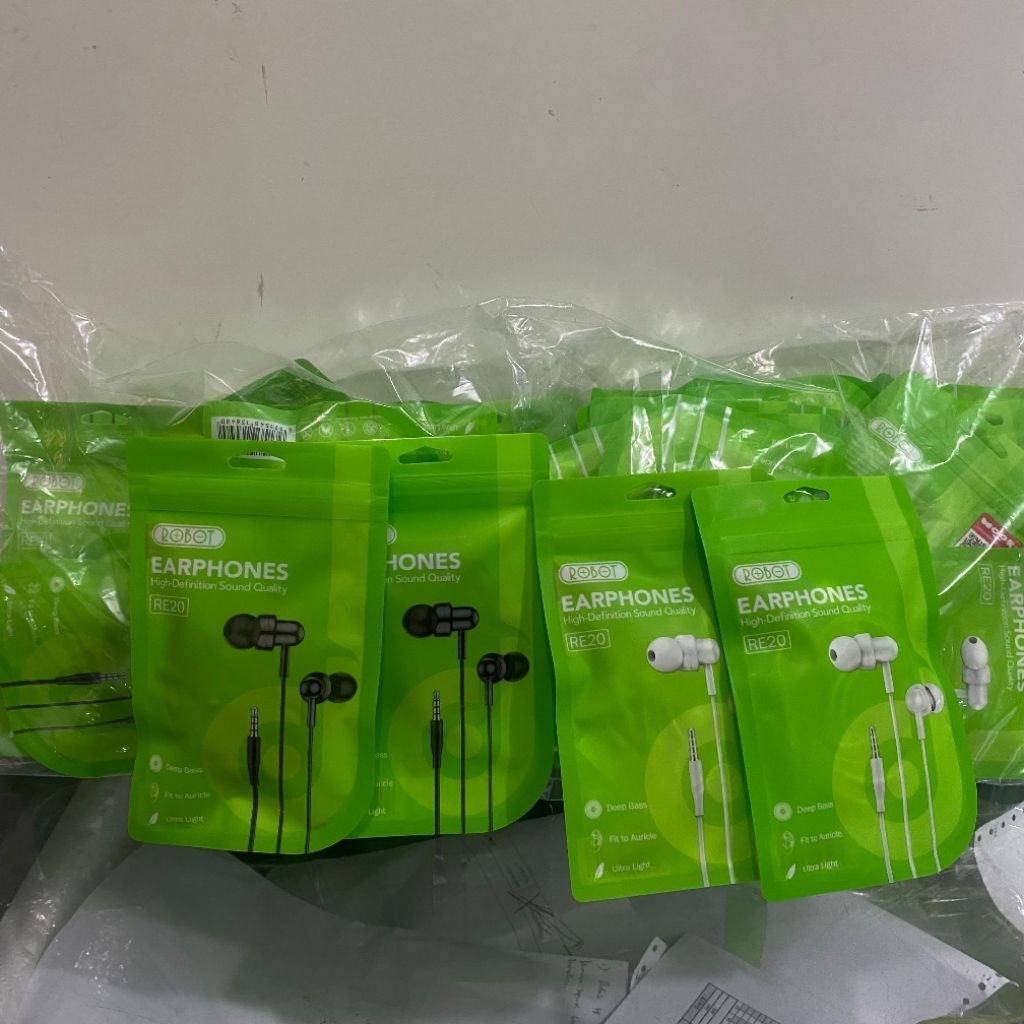 Robot RE20 [ 1 Pack Isi 20 Pcs ] Handsfree Wired Earphone Bass Android Original