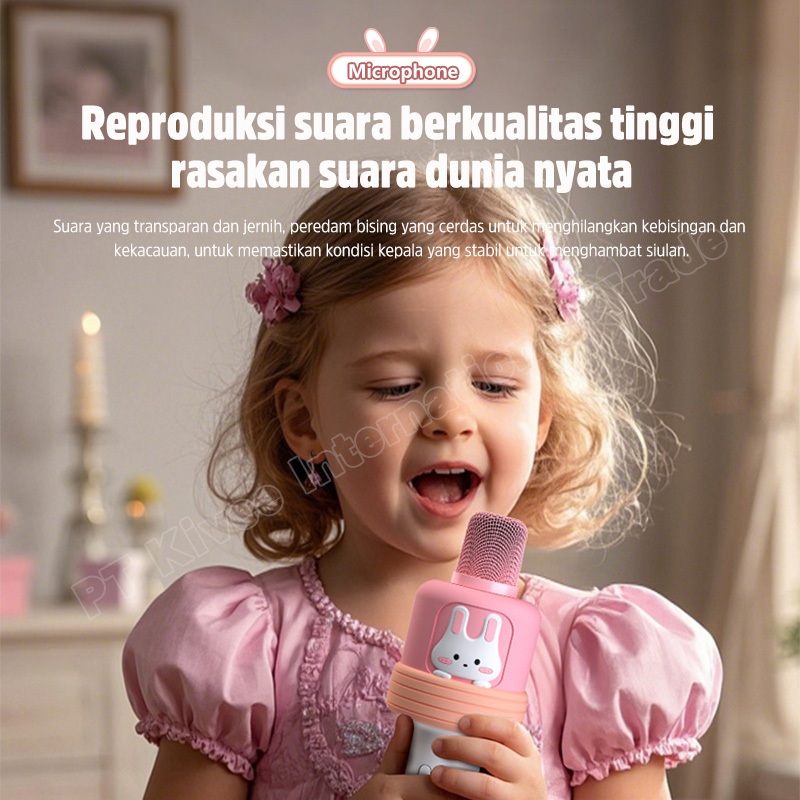 ASTON Mic Wireless Bluetooth 5.3 AT-US50 Microphone Anak Pink Cute Kartun Macaron For Family Karaoke
