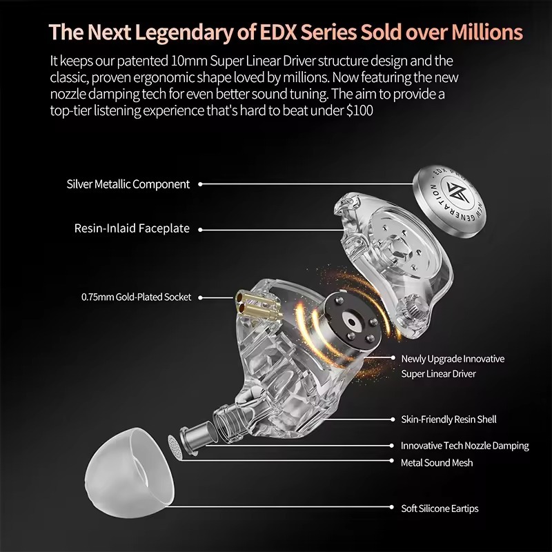 Knowledge Zenith KZ EDX Pro 2 Single Dynamic In Ear Monitor Earphone