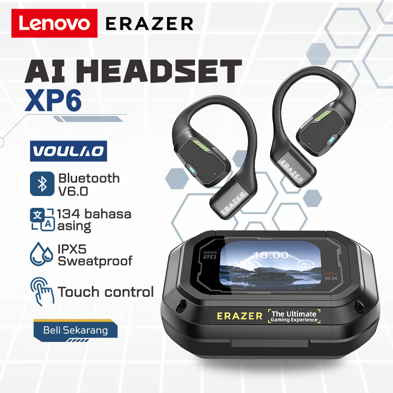 VOULAO X Lenovo ERAZER XP6 Headset Bluetooth terjemahan AI True wireless Bluetooth earphones V5.4 OWS TWS Open Ear earphone tws earhook