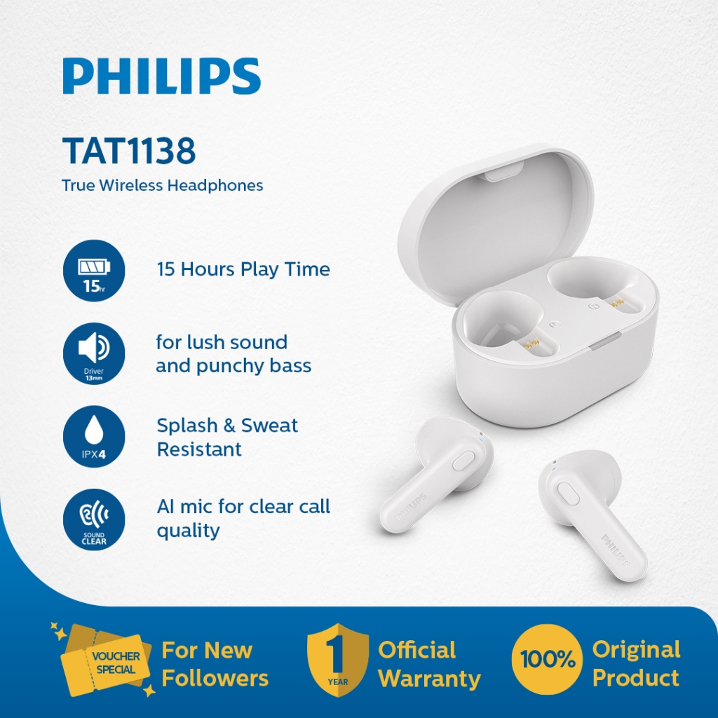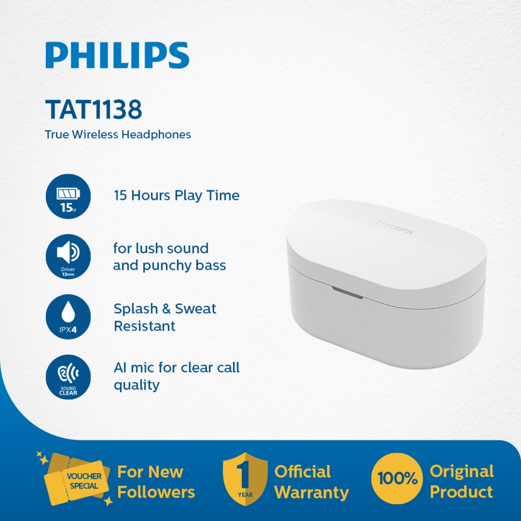 PHILIPS TAT1138 Sport True Wireless With AI Mic for Clear Calls