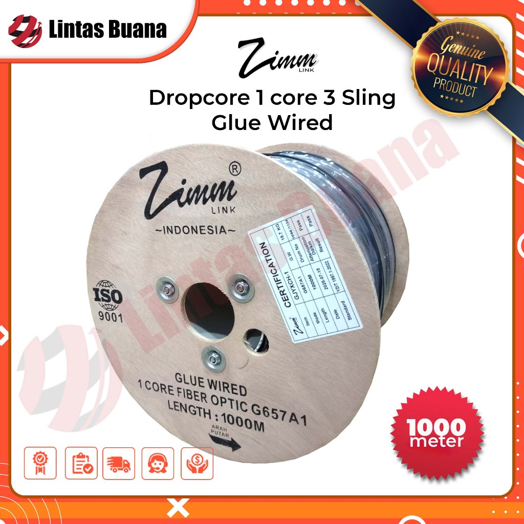 Kabel Dropcore 1 Core 1000 Meter Glue Wired Kabel Fiber Optik 1000m FTTH Zimmlink With GLUE Wired steel wire 1.0mm