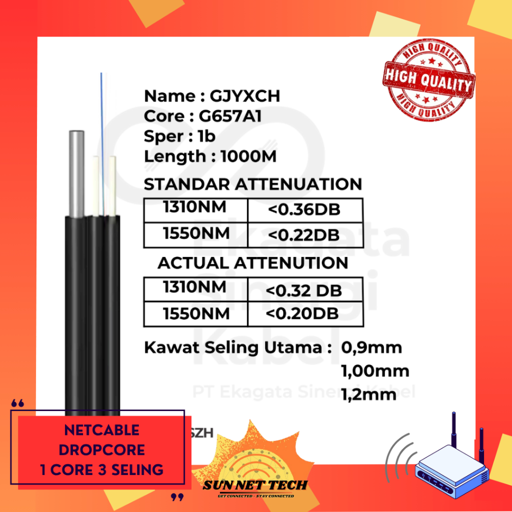 Netcable FTTH G657A1 1 Core 3 Seling 1000 Meter 1000 Mtr 1 KM