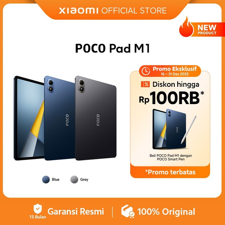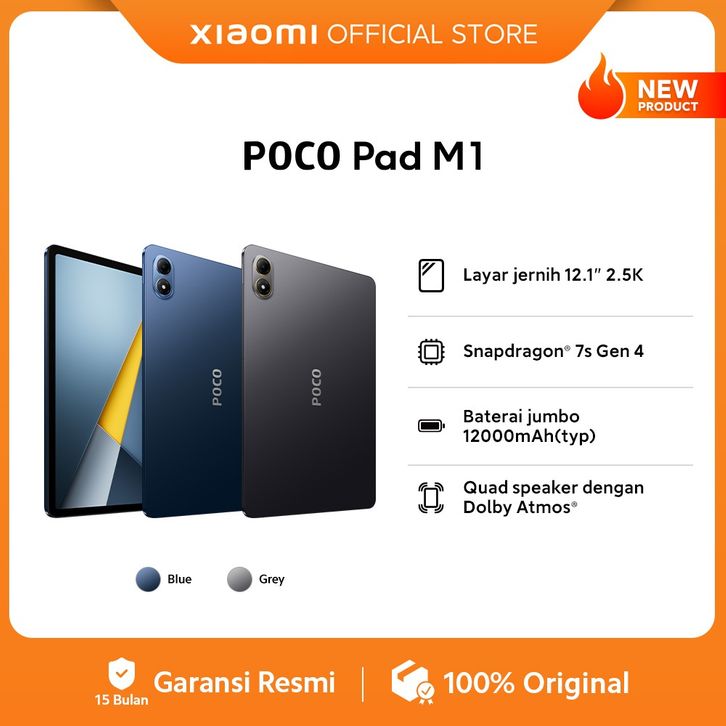 POCO Pad M1 (8GB/256GB) | Layar jernih 12.1" 2.5K | Snapdragon® 7s Gen 4 | Baterai jumbo 12000mAh (typ) | Quad speaker