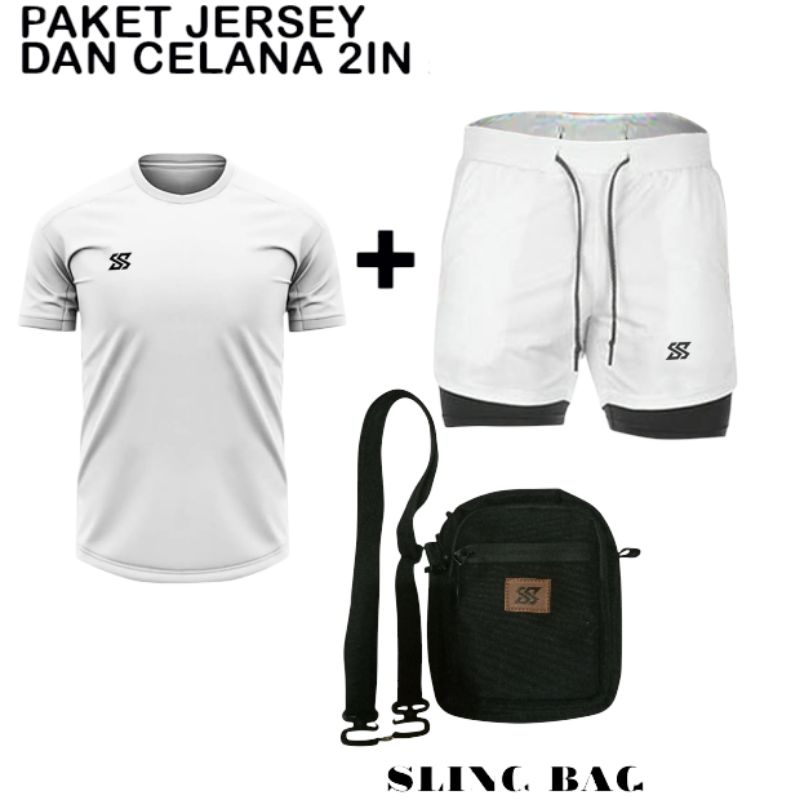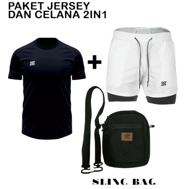Stelan Jersey Baju Dan Celana Olahraga 2in1 Dan Tas Selempang Olahraga Voli Badminton Running Futsal Jogging Pria Wanita