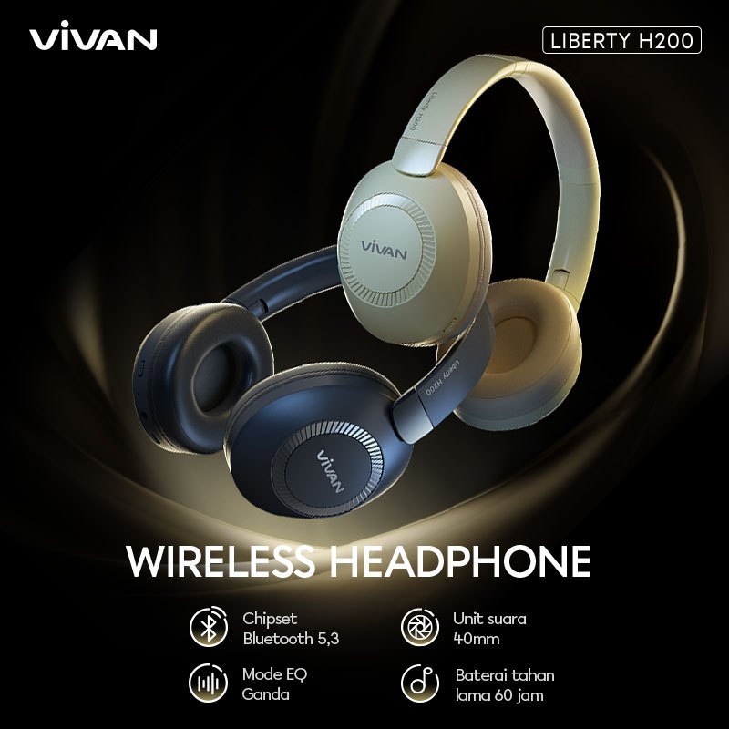 VIVAN Liberty H200 Headset Wireless Earphone Bluetooth 5.3 Headphone Dual DEEP BASS Original Resmi