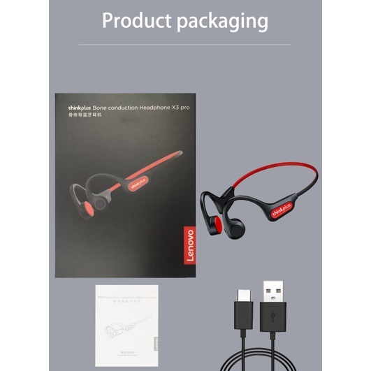 Lenovo Thinkplus X3 Pro Bone Conduction Bluetooth Earphones Olahraga Headphone(Bluetooth V5.3+IP56 Waterproof)