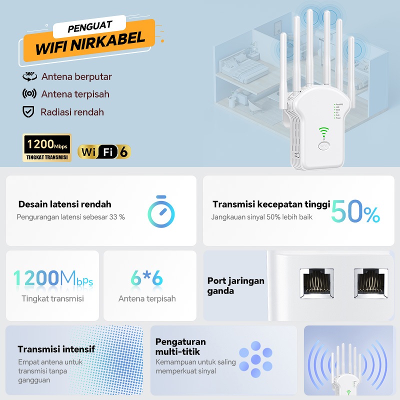 ZERO 6 Antenas 7200Mbps/5GHz WIFI Repeater Wireless Wifi Extender WiFi penguat router,repeater, plug and play, sinyal penetrasi dinding