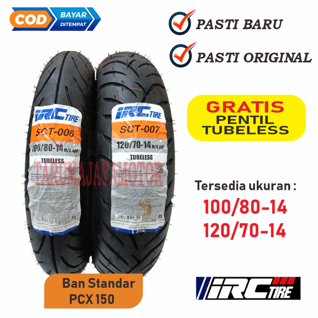 IRC SCT-006 SCT-007 100/80 120/70 Ring 14 Tubeless Ban Luar Motor Matic PCX 150 Standar Original