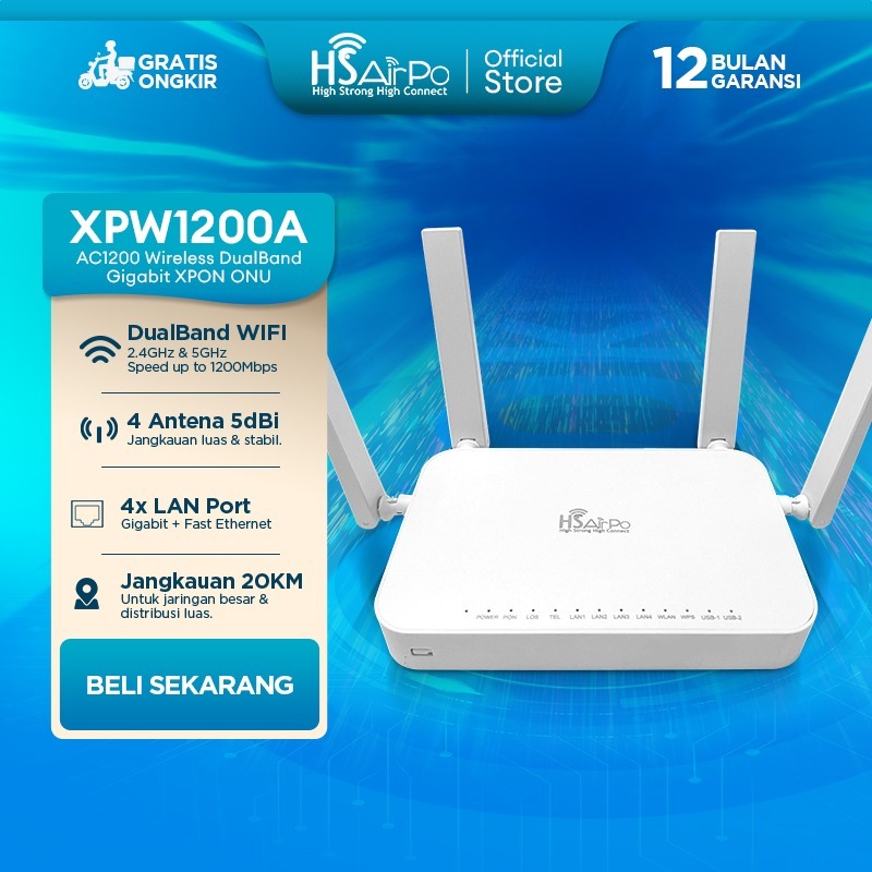 HSAirpo XPON ONU XPW1200A Router Fiber Optik Dual Band Gigabit AC1200 Koneksi Fiber Lebih Stabil dan Cepat
