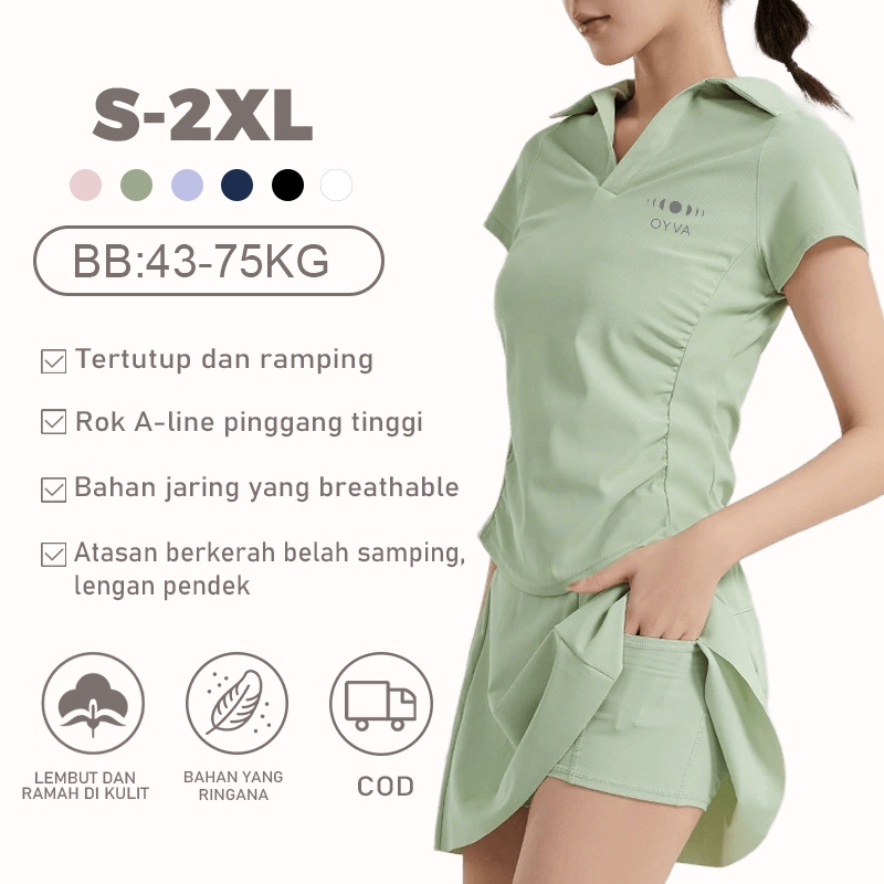 Set Olahraga Wanita Crop Kerah Bernapas Premium/ Set Tenis / Set Badminton Cepat kering dan bernapas
