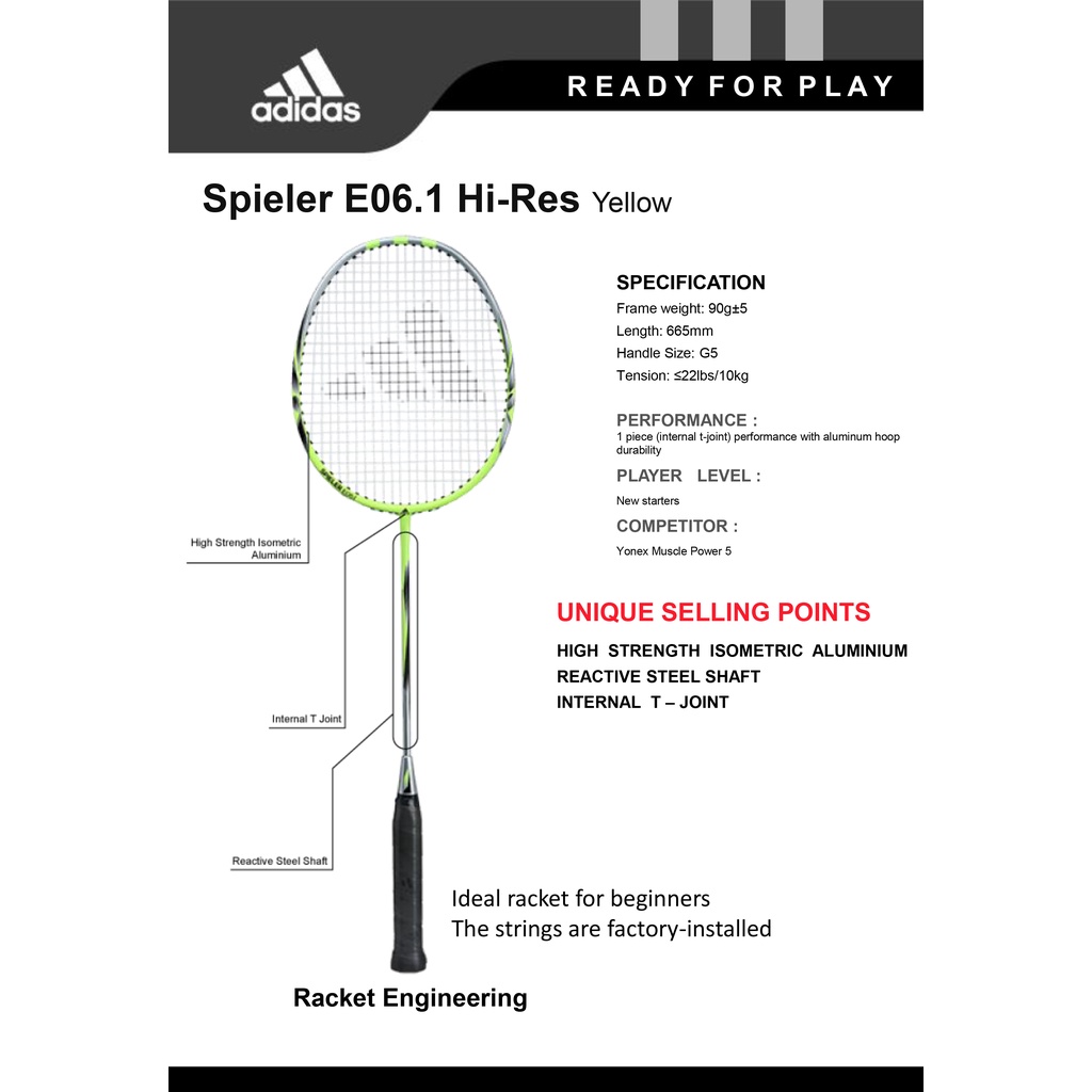 Raket Bulutangkis / Badminton Adidas spieler E06.1 Hi-Res Yellow