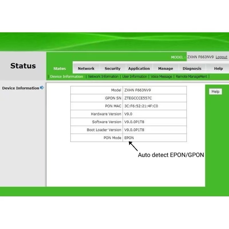 ZTE F663NV9 XPON bisa EPON / GPON ONU ONT Router Wifi