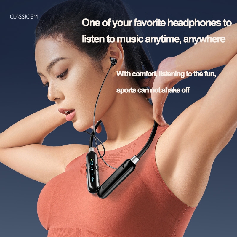 Headset Bluetooth Nirkabel Sesungguhnya Headphone Tali Leher Magnetik Earphone Leher Gantung Olahraga dengan Mikrofon Earphone Bluetooth
