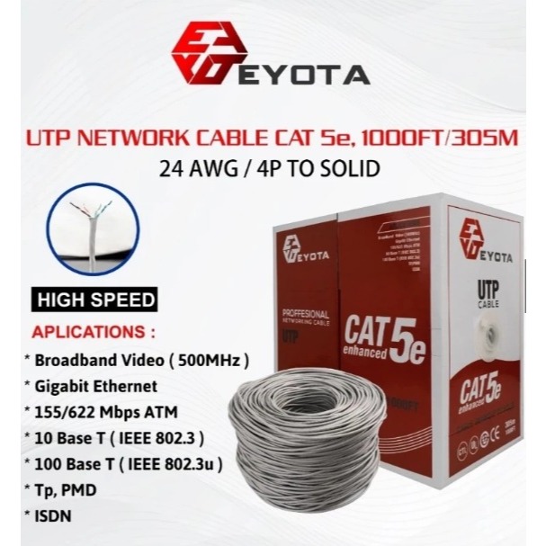KABEL LAN UTP / FTP CAT5E 300 METER EYOTA SUPPORT POE KOMPUTER PC LAPTOP DESKTOP CCTV WIFI