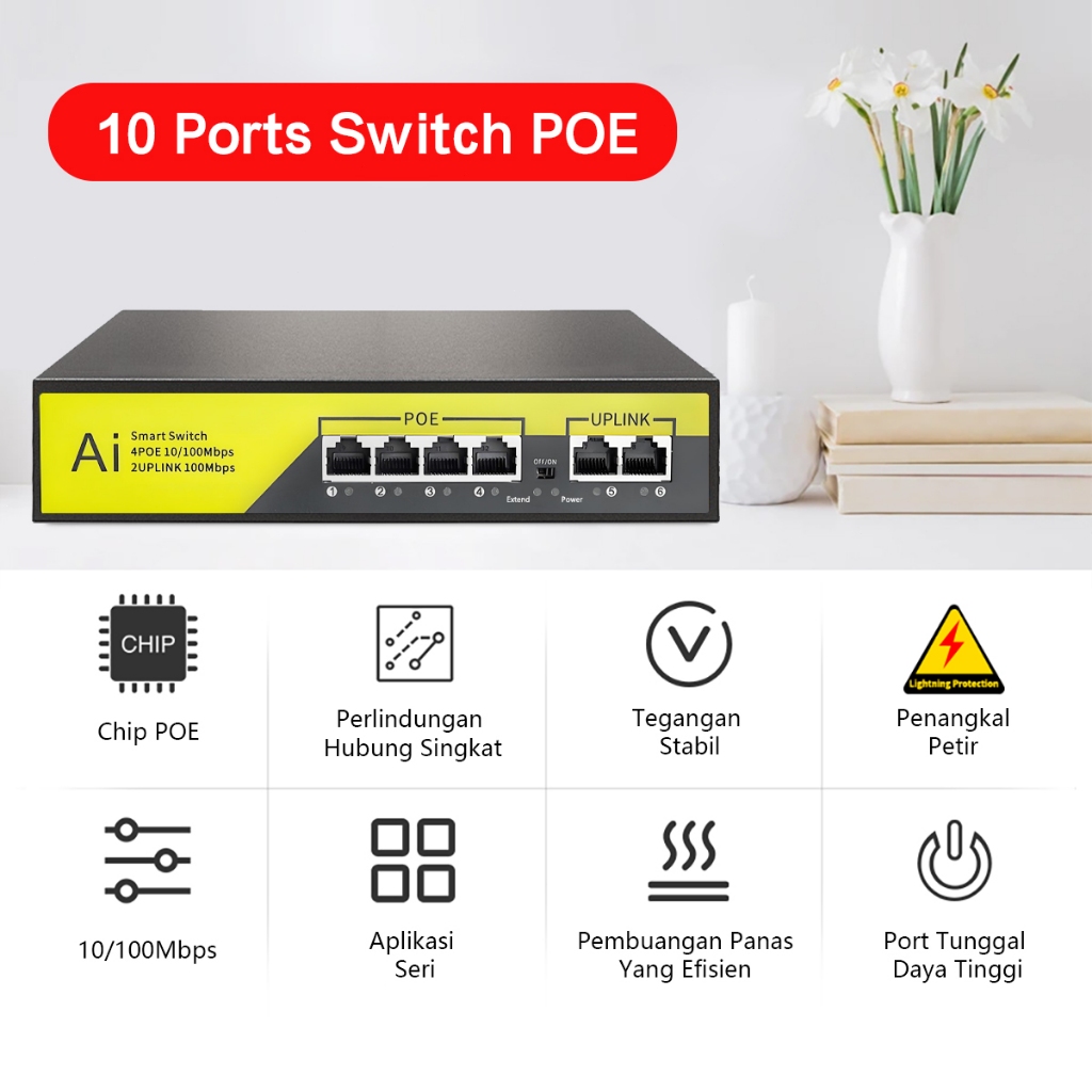 XIHANCAM Switch POE 4 Port 10/100Mbps Network Switch Hub Desktop POE 4+2 Smart Switch POE CCTV RJ45