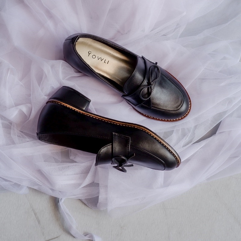 Yovvli Tivanka Flatshoes Sepatu Wanita Kerja kuliah kantor Hitam Kulit sintetis empuk anti lecet hak 3 cm