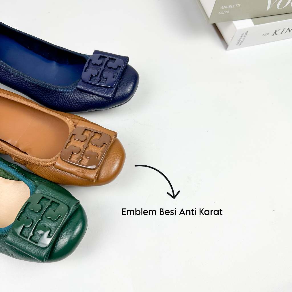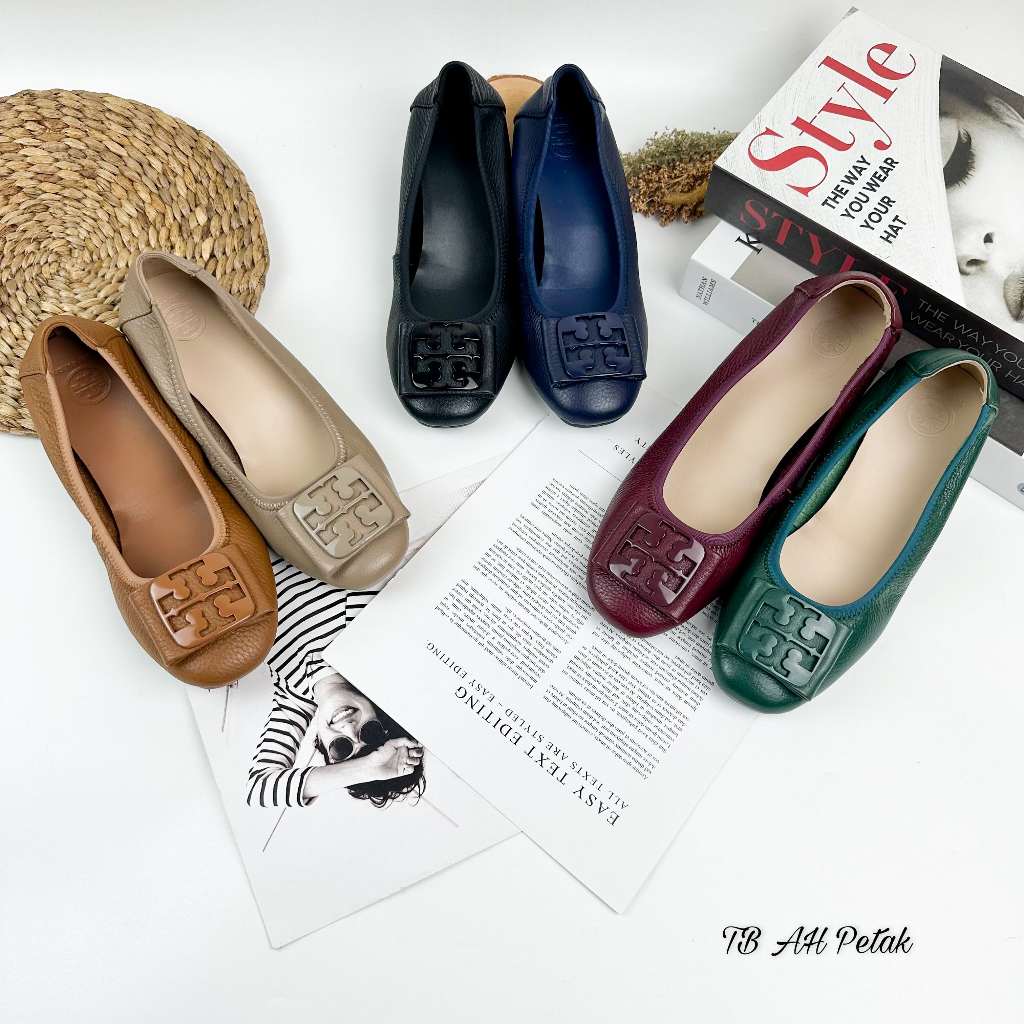 TORY Sepatu Kulit Wanita Flatshoes Tory Logo Petak TB 2246 100 PERSEN Kulit Asli