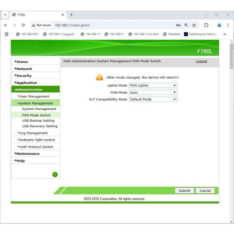 Xpon F780L Dual band 5G Dual Uplink Suport Wan Lan + Onu GPON EPON All OLT