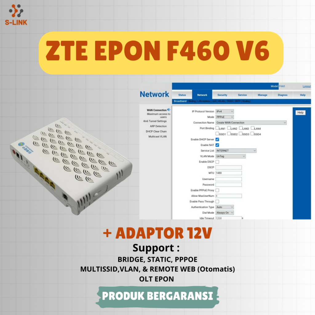 ONT EPON ZTE F460 V6 DENGAN ADAPTOR