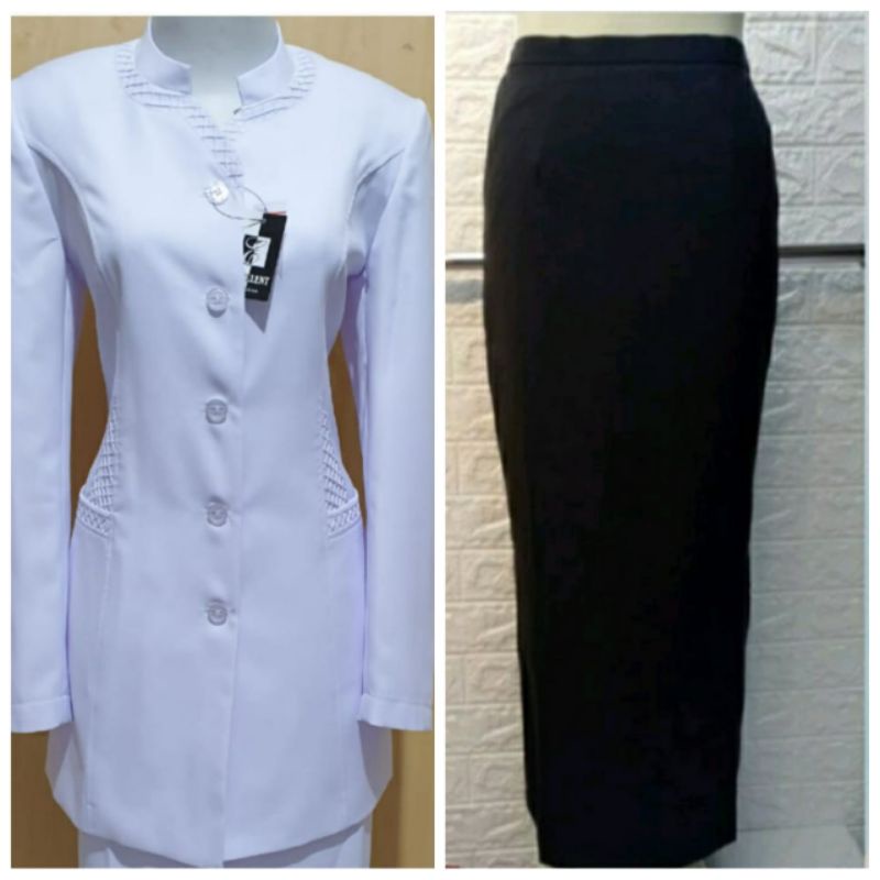 seragam pns putih hitam wanita/ seragam putih putih wanita/ seragam asn wanita putih hitam/ baju kerja wanita putih hita