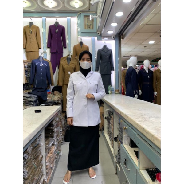 Seragam PNS,ASN,P3K wanita putih hitam Princessfa/ Blezer princessfa/ Seragam ASN wanita putih kantong 2/ Seragam PPPK w